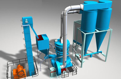 物料研磨后的細粉隨鼓風機的循環(huán)風被帶入分析機進行分選,細度過粗的物料落回重磨,合格細粉則隨氣流進入成品旋風集粉器,經(jīng)出粉管排出,即為成品。在磨室內(nèi)因被磨物料中有一定的水分, 研磨時生熱,水氣蒸發(fā),以及整機各管道接口不嚴密,外界氣體被吸入,使循環(huán)氣壓增高,保證磨機在負壓狀態(tài)下工作,所增加的氣流量通過余風管排入除塵器,被凈化后排入大氣。